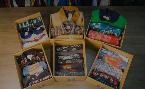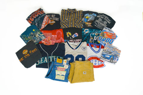Each box is a hand-picked mix of authentic vintage pieces : think graphic tees, denim, jackets, or pants - curated based on your chosen size and style preferences. Every box is unique, so no two customers ever get the same combo.