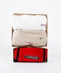 Get the logos that actually matter. Nike, Champion, Adidas, Tommy Hilfiger, Reebok. Each box contains sought-after pieces from the 80s-00s and newer models: vintage tees, hoodies, crewnecks, track jackets. These are authentic pieces that hold real resale value, not reproductions. Perfect for building out your rotation with recognized brands that work year-round.